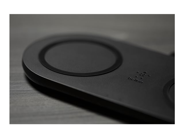 Prevent a bottleneck at your charging pad by doubling down. Take advantage of all the benefits of wireless charging technology, plus the convenience of charging two devices simultaneously. BOOST CHARGE Dual wireless charging pads free up counter or desk space. The non-slip grip design keeps your devices securely in place to ensure they keep charging, and LED lights indicate when they're charging correctly.