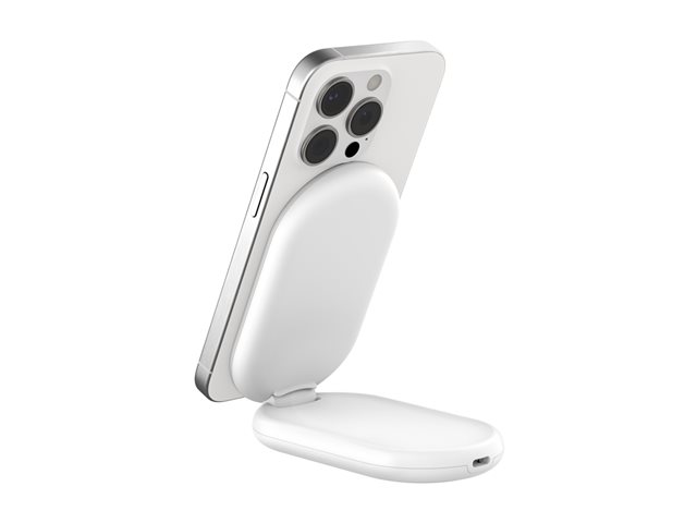 magnetisk, sammenleggbar, med Qi2 + AC-strømadapter - 15 watt - 3 A - Fast Charge, Power Delivery 3.1 - hvit