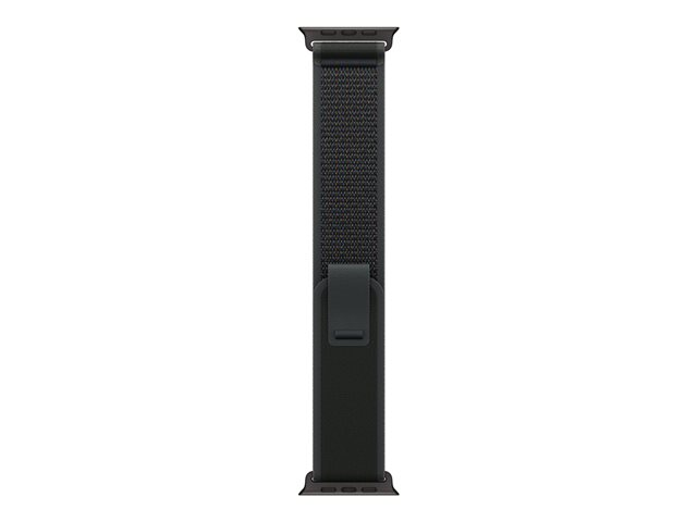 Klokkesløyfen har en krok- og løkkespenne som gjør den enkel å justere og gir en sikker passform. Den er kompatibel med urkassestørrelser på 44 mm, 45 mm, 46 mm og 49 mm, og er dermed allsidig for ulike Apple Watch-modeller. Den svarte titanfinishen forsterker det estetiske uttrykket, noe som gjør den egnet for både uformelle og formelle settinger.