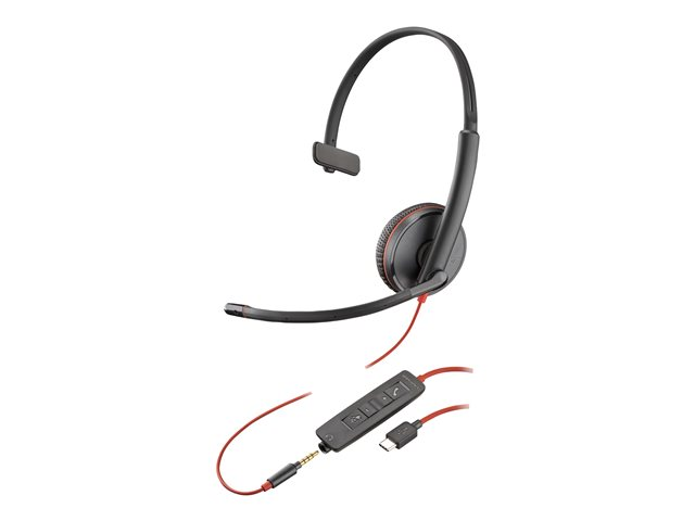 Blackwire 3200 Series - hodesett - on-ear - kablet - USB-C, 3,5 mm jakk - svart - Skype Certified, Cisco Jabber Certified, Avaya Certified