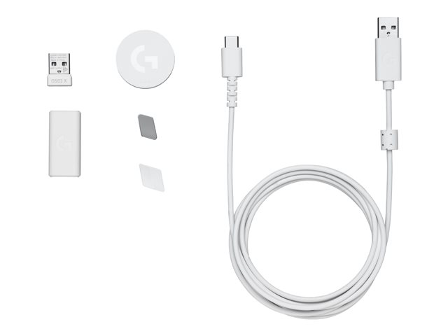 Mus - optisk - 8 knapper - trådløs - 2.4 GHz - USB Logitech LIGHTSPEED-mottaker - hvit