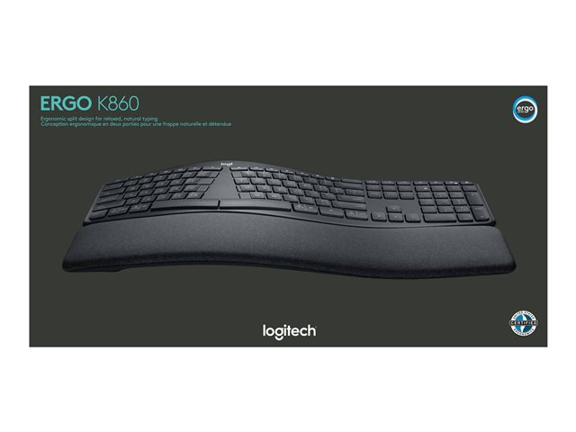 ERGO K860 er et delt ergonomisk tastatur som er utviklet for bedre holdning, mindre belastning og mer støtte. Du skriver naturlig på en buet, delt tasteramme som forbedrer skriveholdningen din. Den unike formen reduserer muskelbelastningen på håndledd og underarmer - hendene og skuldrene får en mer avslappet holdning.