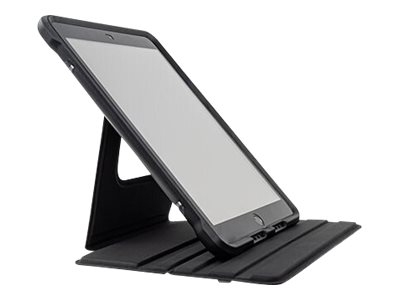 - Two-panel folio rotates and folds into multi-position stand