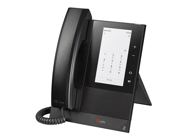 HP Inc. Poly CCX 400 VoIP-telefonen er designet for å møte kravene til moderne kommunikasjon med sin HD-skjerm på 5 tommer, noe som sikrer levende farger og klarhet. Denne enheten skiller seg ut med sine avanserte lydteknologier, inkludert Poly Acoustic Clarity og Poly HD Voice, som gir klar lydkvalitet. En adaptiv jitterbuffer forbedrer samtalekvaliteten ytterligere, slik at hver samtale blir sømløs.