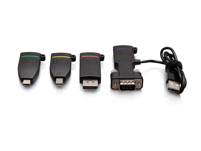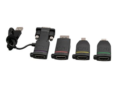 Produktbeskrivelse C2G Retractable Universal Mount 4K HDMI Adapter Ring with Color Coded Mini DisplayPort, DisplayPort, USB-C, and VGA - videoadaptersett - Mini DisplayPort / DisplayPort / USB-C / VGA Kabel Videoadaptersett - Mini DisplayPort / DisplayPort / USB-C / VGA Inkludert antall 4 Farge Svart Egenskaper 4K-støtte Fabrikantgaranti Begrenset livstidsgaranti -