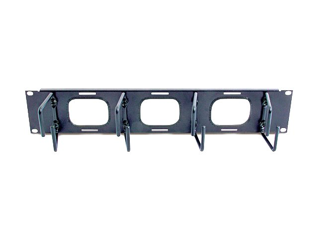 This cable organizer facilitates front cable management while allowing cables to pass through to rear appliances.