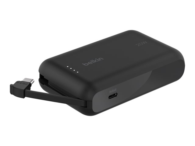 The Belkin BoostCharge power bank is designed to keep your devices charged and ready to go. With a substantial battery capacity of 10,000 mAh, this power bank provides reliable power delivery to your tablet and cellular phone. It features an integrated USB-C cable that allows for easy connectivity, eliminating the need to carry extra cables. The power bank supports fast charging technology, delivering up to 20 W to ensure your devices are charged quickly and efficiently.