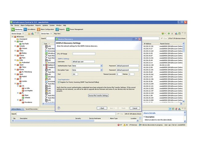 InfraStruXure Central Basic scales up to 525 devices and 15 surveillance cameras. It supports capacity management up to 20 racks and change management up to 1000 IT assets.