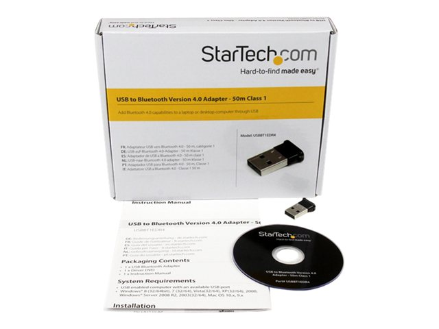 Compliant with Bluetooth 4.0 LE +EDR, the USB Bluetooth adapter offers data transfer rates up to 3 Mbps and low power consumption. This Bluetooth Smart Ready transceiver is an effective way to connect to a rapidly growing list of the Bluetooth Smart peripherals on the market, including the latest Apple and Android smartphones and tablets. Bluetooth v4.0 also integrates added security for all transfers using 128-bit AES encryption.