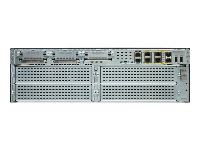 Cisco 3900 Series Integrated Services Routers build on many years of Cisco innovation and product leadership. The platforms are architected to enable the next phase of branch-office evolution, providing rich media collaboration and virtualization to the branch while maximizing operational cost savings. The integrated services routers generation 2 are future-enabled with support for high capacity DSPs (Digital Signal Processors) for future enhanced video capabilities, high powered service modules with improved availability, multi-core CPUs, Gigabit Ethernet switching with enhanced POE, and the improved energy visibility and control capabilities while enhancing overall system performance. Overall, the Cisco 3900 Series offer unparalleled total cost of ownership savings and network agility through the intelligent integration of market leading security, unified communications, wireless, and application services.