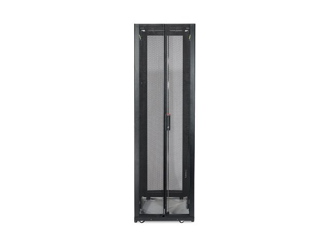 - Mounts two APC metered PDUs in one rear channel;