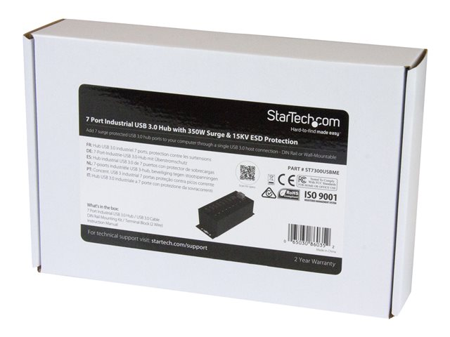 Metal Industrial USB-A Hub with ESD Protection & 350W Surge Protection - Din Rail, Wall or Desk Mountable - TAA Compliant USB Expander Hub (ST7300USBME) - Hub - 7 x SuperSpeed USB 3.0 - DIN-skinnemonterbar, veggmonterbar - DC-strøm - for P/N: ITB20D3250, USB312SAT3CB, USB315CB2M, USBLT1MWS, USBLT2MBR, USBLTM1MBK, USBLTM1MWH