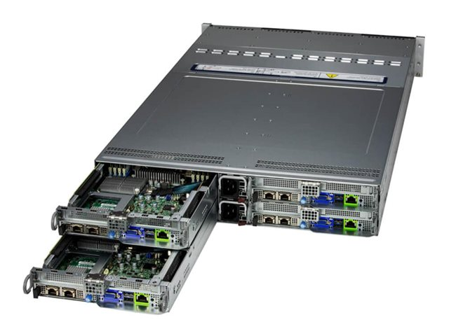 With its four computing nodes, each capable of supporting dual CPUs, the Supermicro BigTwin SuperServer offers scalability, making it a suitable choice for growing enterprises. The server's memory capabilities are impressive, with 16 DIMM slots for DDR5 SDRAM, supporting memory speeds of up to 5600 MHz, ensuring that memory-intensive applications run smoothly.
