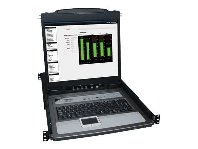 The eight included P778-series combo cable kits support both PS/2 and USB connections, so no adapters are required. A console cable kit can be plugged into the rear of the unit to allow for connection of a Tripp Lite B051-000 IP Remote Access Unit or an external console. A USB port on the front of the keyboard lets you connect an external mouse, plus an external USB 1.1 port means you can add a peripheral that can be shared across all connected servers. When not in use, the B020-U16-19-K stores neatly in a rack drawer and pulls out when needed. This KVM console is compatible with all major operating systems. Heavy-duty steel housing stands up to frequent use.