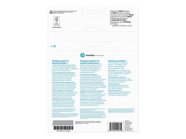 Bli fornøyd - skriv ut og del fotoprosjekter rimelig. Dette lavkostfotopapiret er ideelt for spontane hjemmefotografier og skoleprosjekter. Bruk HP Photo Creations-programvaren til å gjøre om øyeblikksbilder til fotokuber, kalendere og annet.
