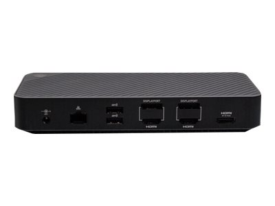 This docking station supports crisp, high-definition images and video when connecting one, two, or three 4K displays. When connecting to the HDMI port labeled "DP Alt Mode", be sure that the connected laptop supports DP alt mode. The front USB-A and USB-C 3.2 Gen 2 ports support BC 1.2 for quick mobile device charging and data transferring up to 10Gbps, while the two USB-A Gen 1 ports on the rear support 5 Gbps data transfers. The Ethernet port allows for reliable Internet connectivity with file transfer speeds up to 1000 Mbps.