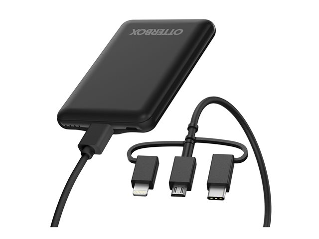 - Includes mobile power bank and 3-in-1 cable with USB-A to Micro-USB with USB-C and Lightning adapters