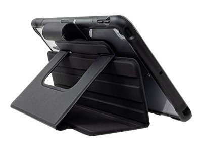- Two-panel folio rotates and folds into multi-position stand