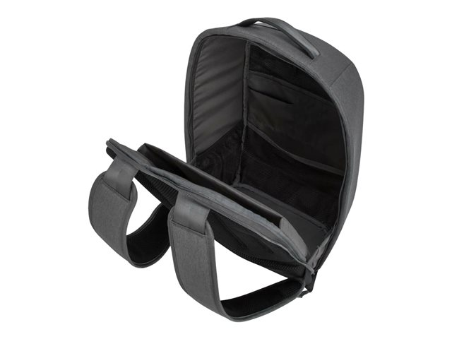 - Single interior compartment opens backward for enhanced security