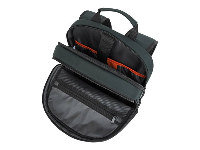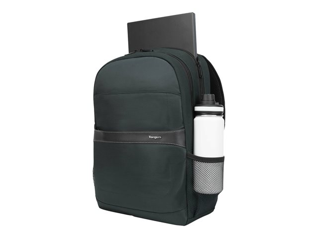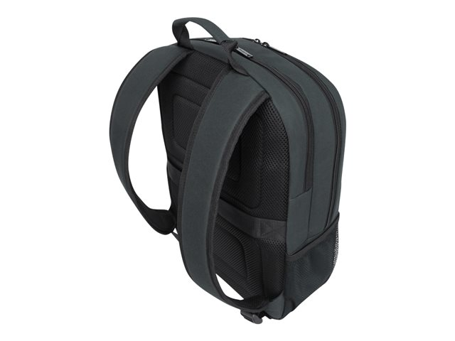Get professional style and abundant organization with the 12"- 15.6" GeoLite Advanced Backpack. With a clean, lightweight look, it's ideal for professionals who want laptop protection and added organization in a modern silhouette. The Targus quality foam compartment protects your laptop from everyday bumps. The padded back panel includes air mesh for added comfort. Multiple zippered pockets inside and out keep you efficiently organized. Dual side pockets keep your hydration and umbrella close at hand. Travel with ease atop rolling luggage with the integrated trolley strap. Durable, dobby polyester in modern slate gray delivers minimalist good looks. Water-repellent fabric helps keep it looking good for the long haul.