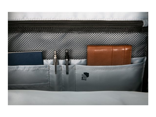 - Convenient workstation with RFID-blocking protection and padded tablet pocket