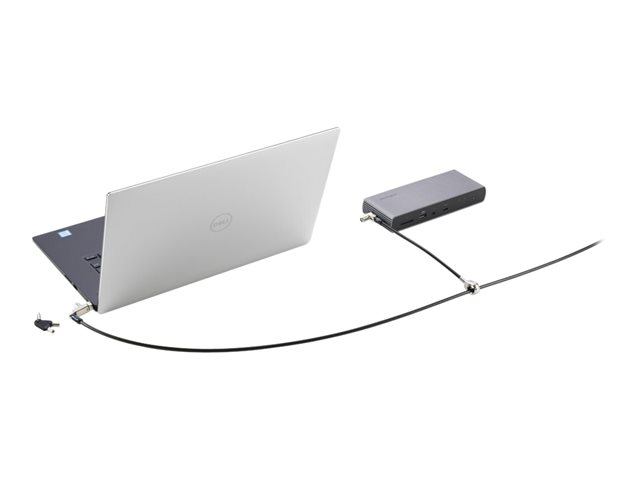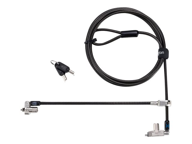 The Slim N17 2.0 Keyed Dual Head Laptop Lock for Wedge-Shaped Slots lets you lock two devices with a single solution, won't block valuable ports, and allows the laptop to lie flat and stable. Secondary T-bar lock head secures peripheral accessories featuring the industry-standard Kensington Security Slot. Meets or exceeds rigorous strength testing standards. Features an omnidirectional pivoting head and rotating anchor, 5mm keying system. Master keyed provides administrative access, so the IT manager can have a key for all locks while each user has their own individual lock and key.